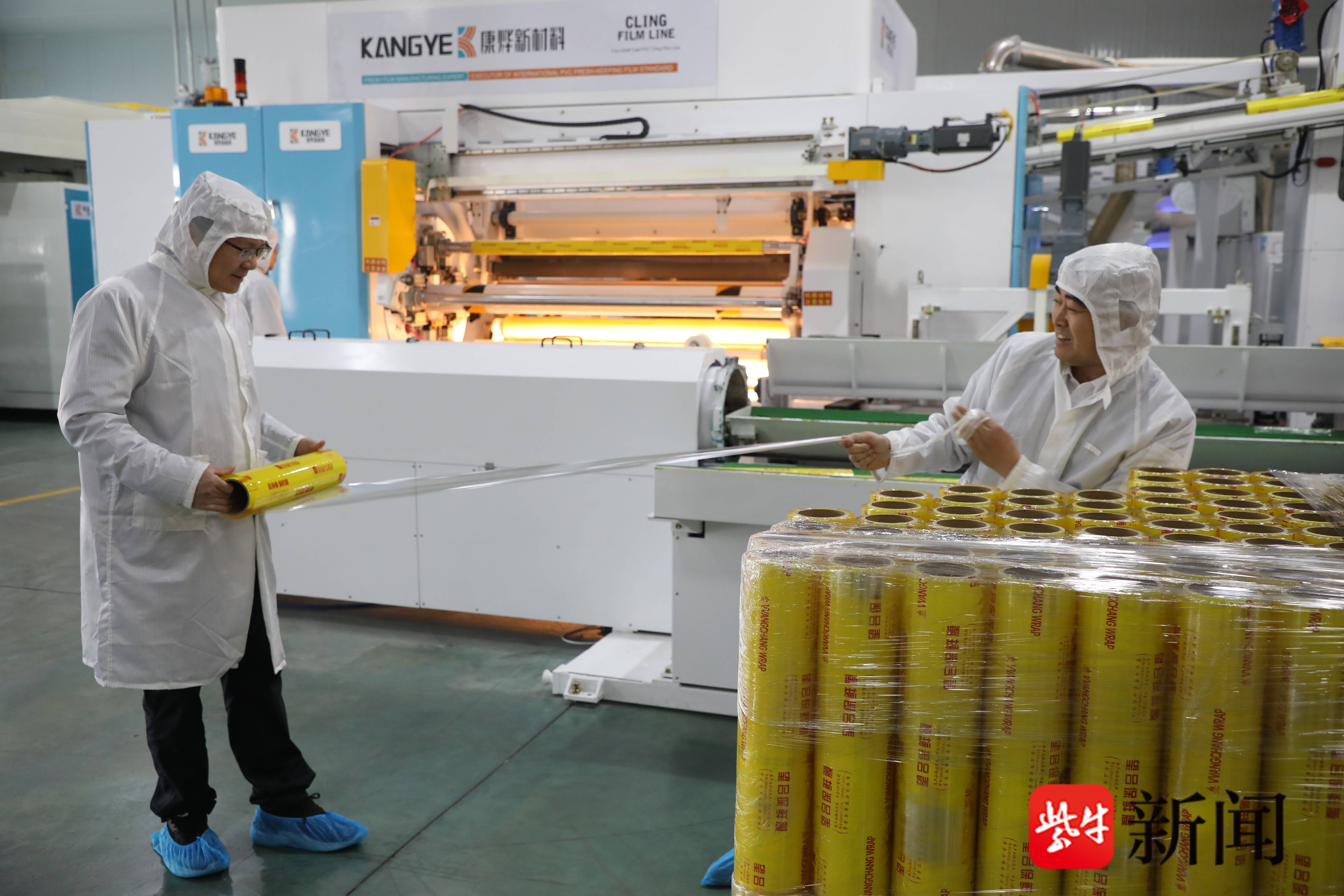 在位于连云港市赣榆区塔山镇工业勾通区内的该企业高性能保鲜膜出产车间内,机械的轰鸣声此伏彼起,6条PVC、PE保鲜膜自动化出产线加快运转,薄膜像一条条“瀑布”顺流直下。为了晋升出产成果,这些出产线上新增了“新伙伴”,包括自动上纸管、自动卸换卷等先进开导,日产能高达30吨。